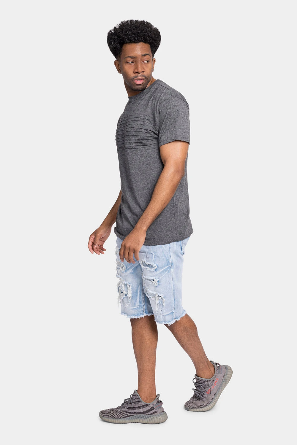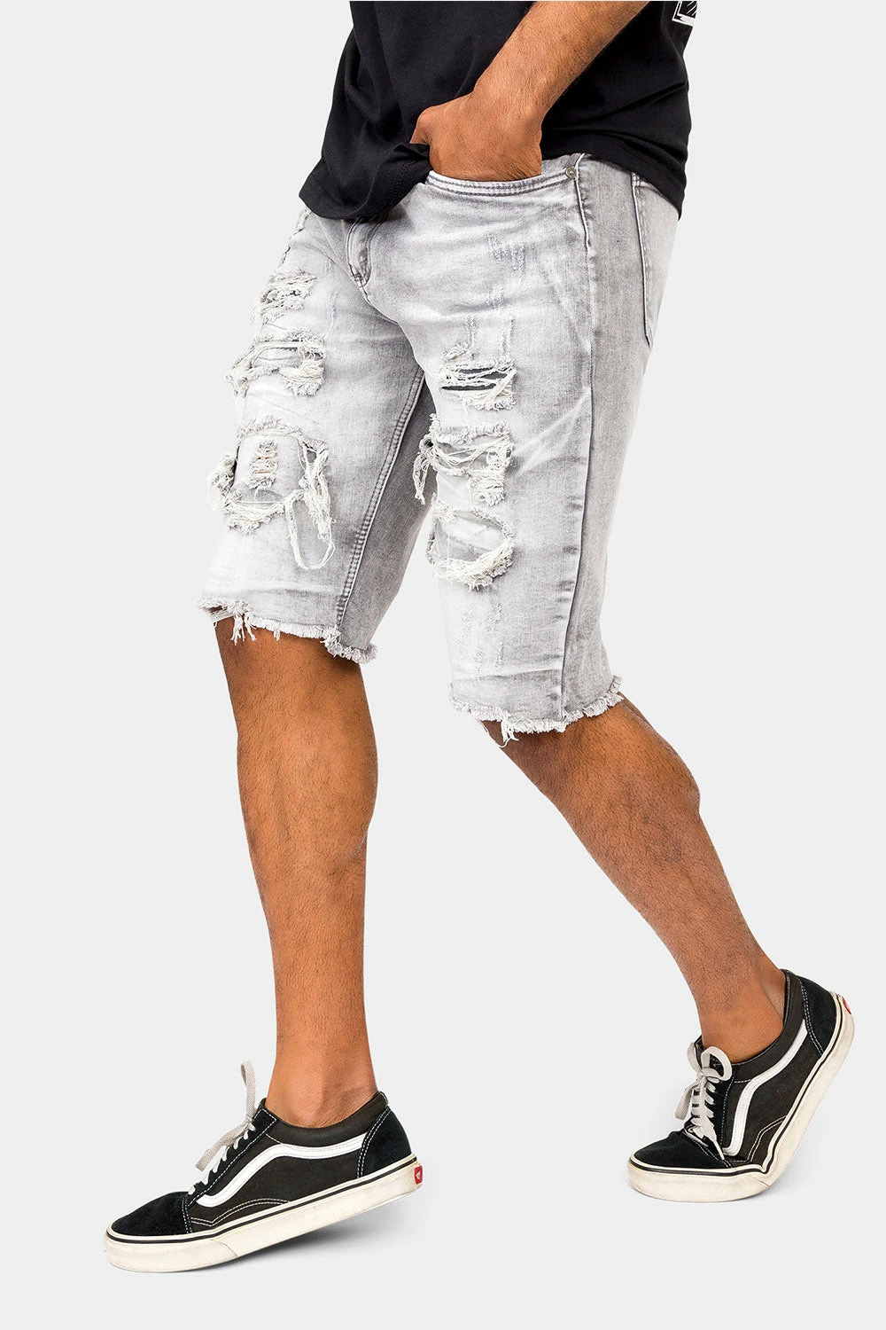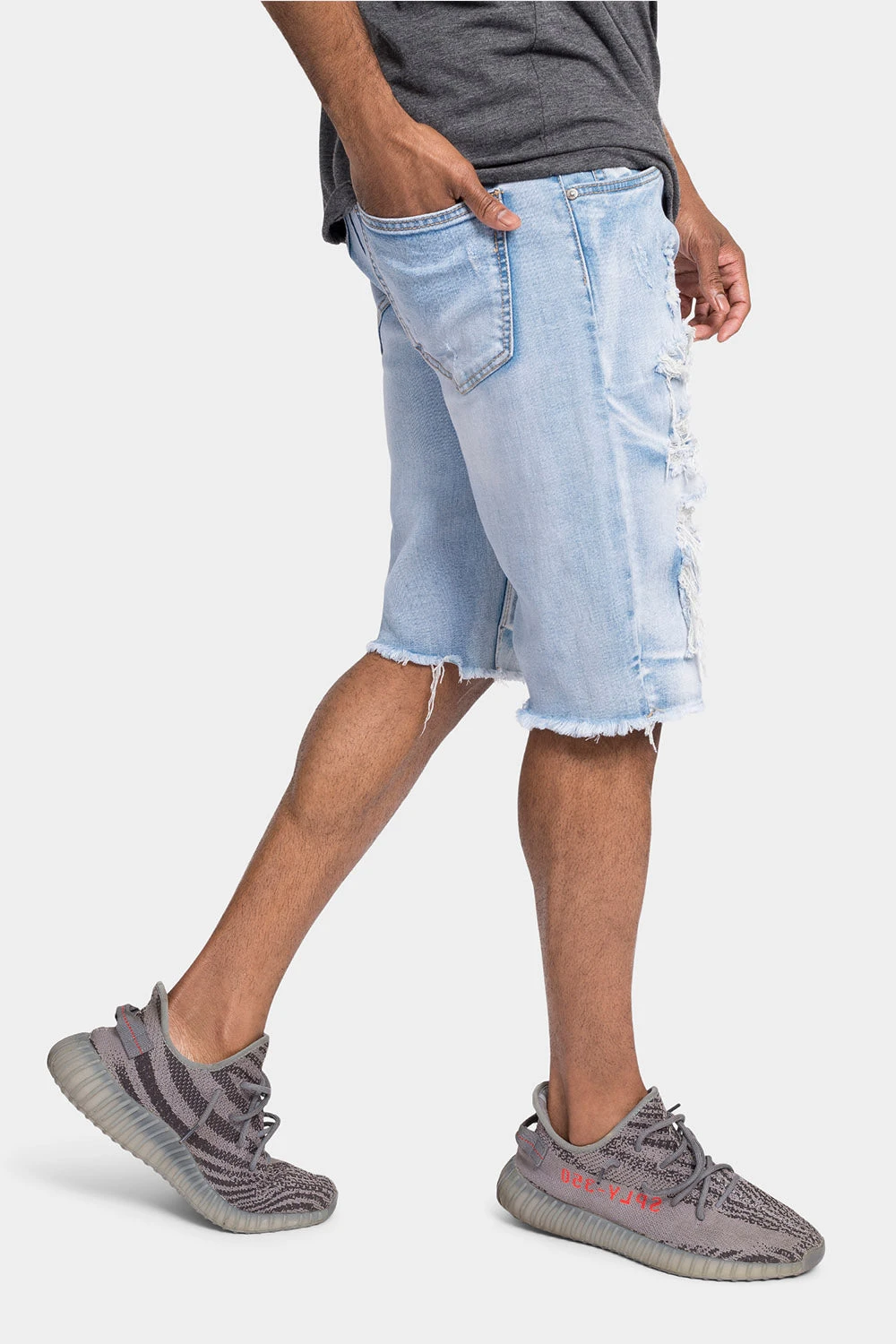 Look cool and stay cooler in our distressed illusion shorts. These fashionable shorts feature an unique threadbare design look to capture anyone’s attention.