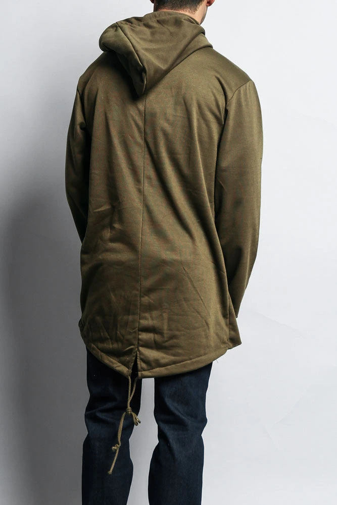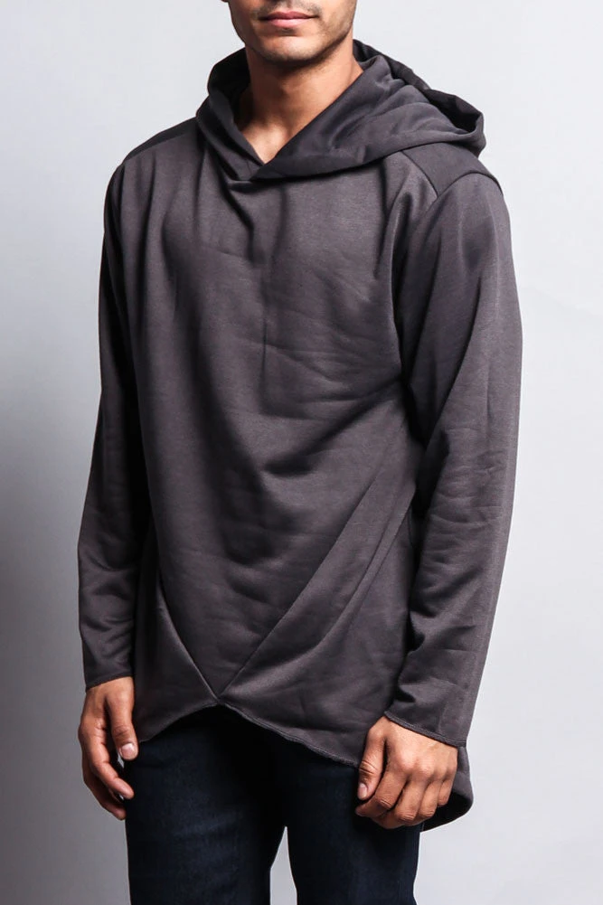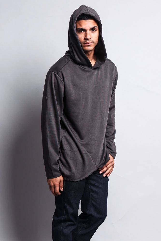 Layer up with all new styles like this great trendy pullover hoodie that features an elongated length as well as a unique fishtail back.