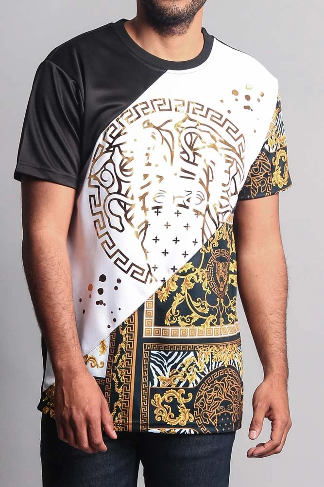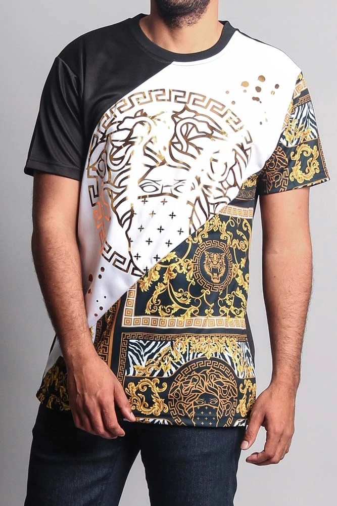 Stand out in our tri-color contrasting t-shirt. Perfect for fashion forward men who want to keep with the trends while staying on a budget.