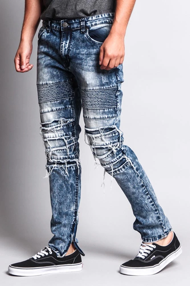 Follow current fashion trends with our scrunched acid washed jeans with zippered ankles for a tailored fit.