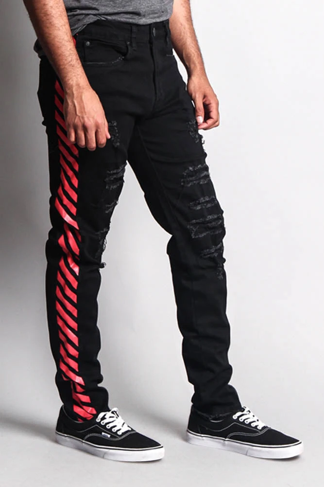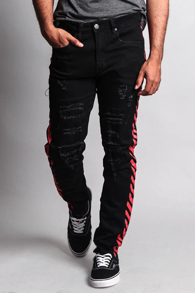 Stay fashionable on a budget with our new high fashion inspired distressed jeans. Perfect for dressing up any outfit.