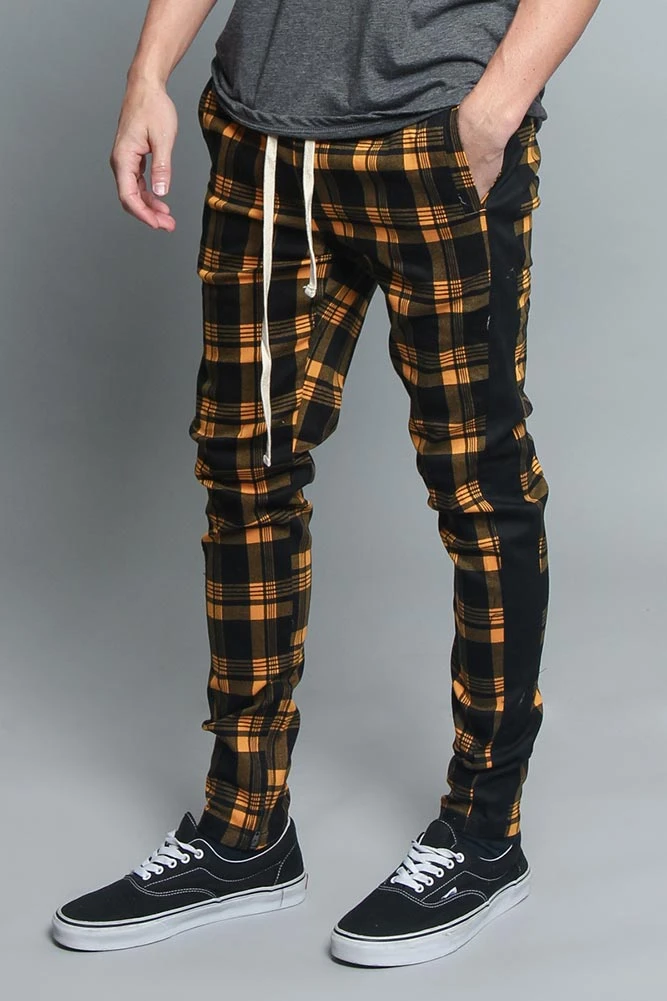 Switch up your style and rock our new plaid track pants. These comfortable and stylish track pants offer adjustable drawstrings at the waist for a custom fit.