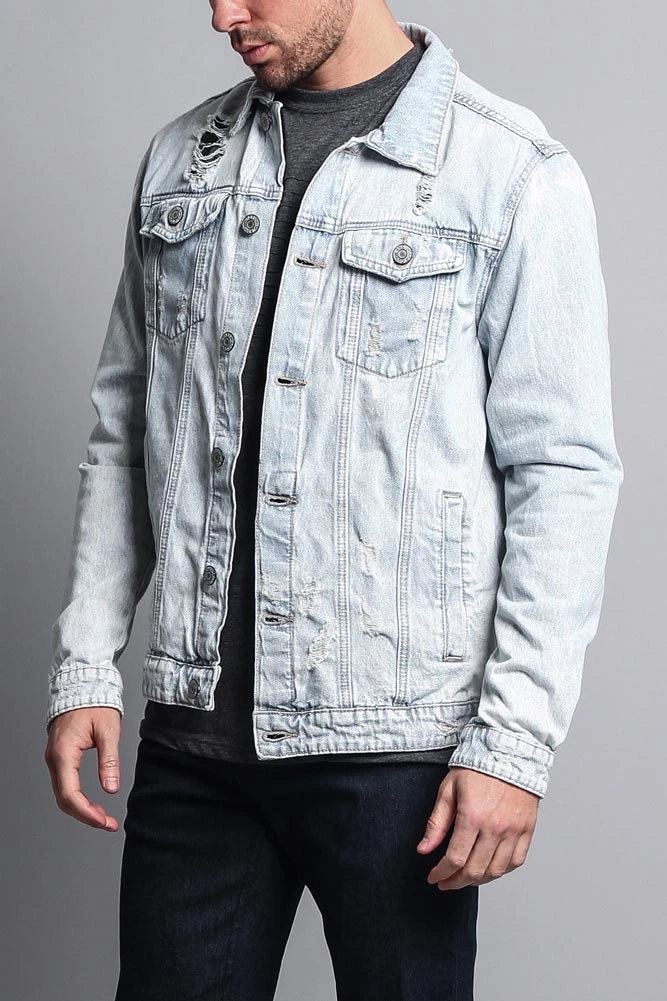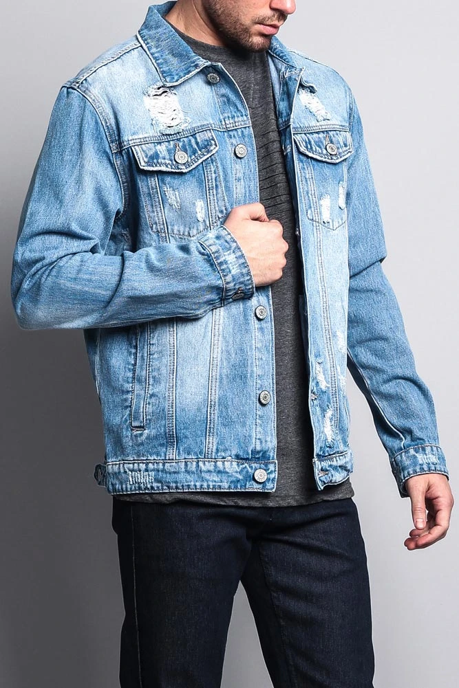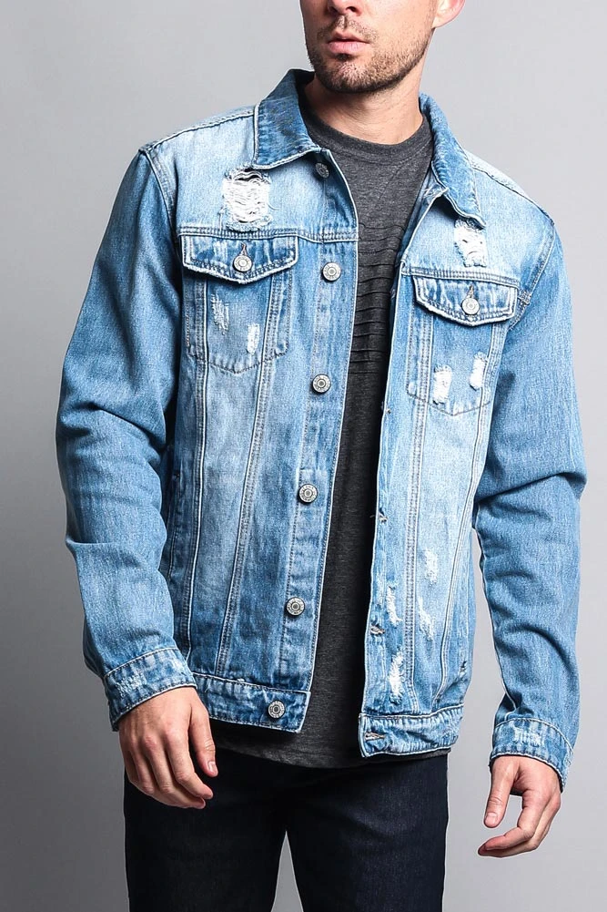 The classic denim jacket with a modern flair. Our new denim jacket comes in a more premium material and offers slight rips and distressing for a worn-in look.