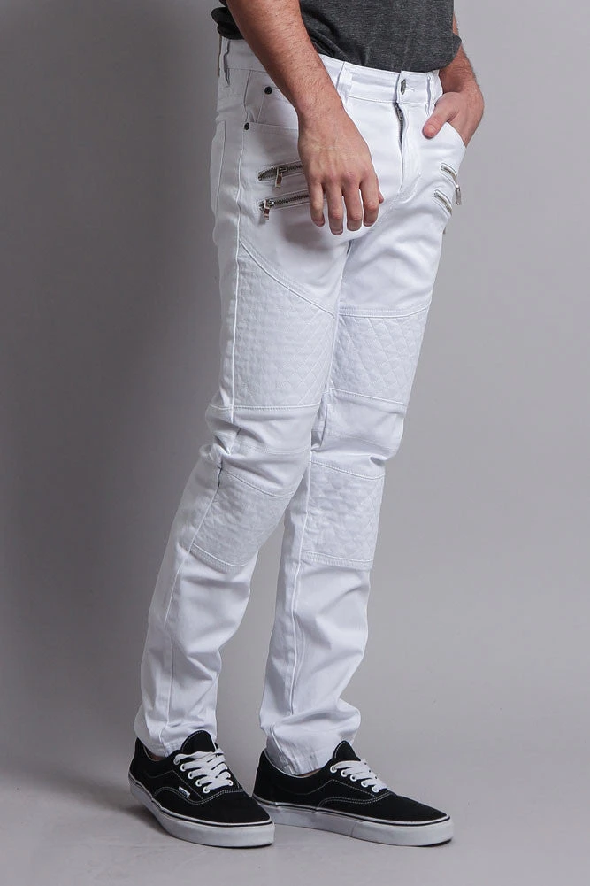 Our skinny fit is perfect for the guy who’s on top of his style game. Stay trendy with these zipper-accented biker-style jeans, perfect for wearing with sneakers, or go military-inspired with a great pair of boots.