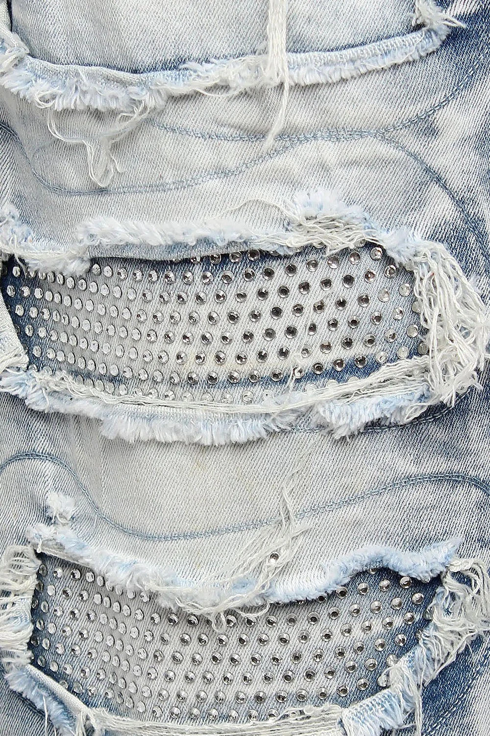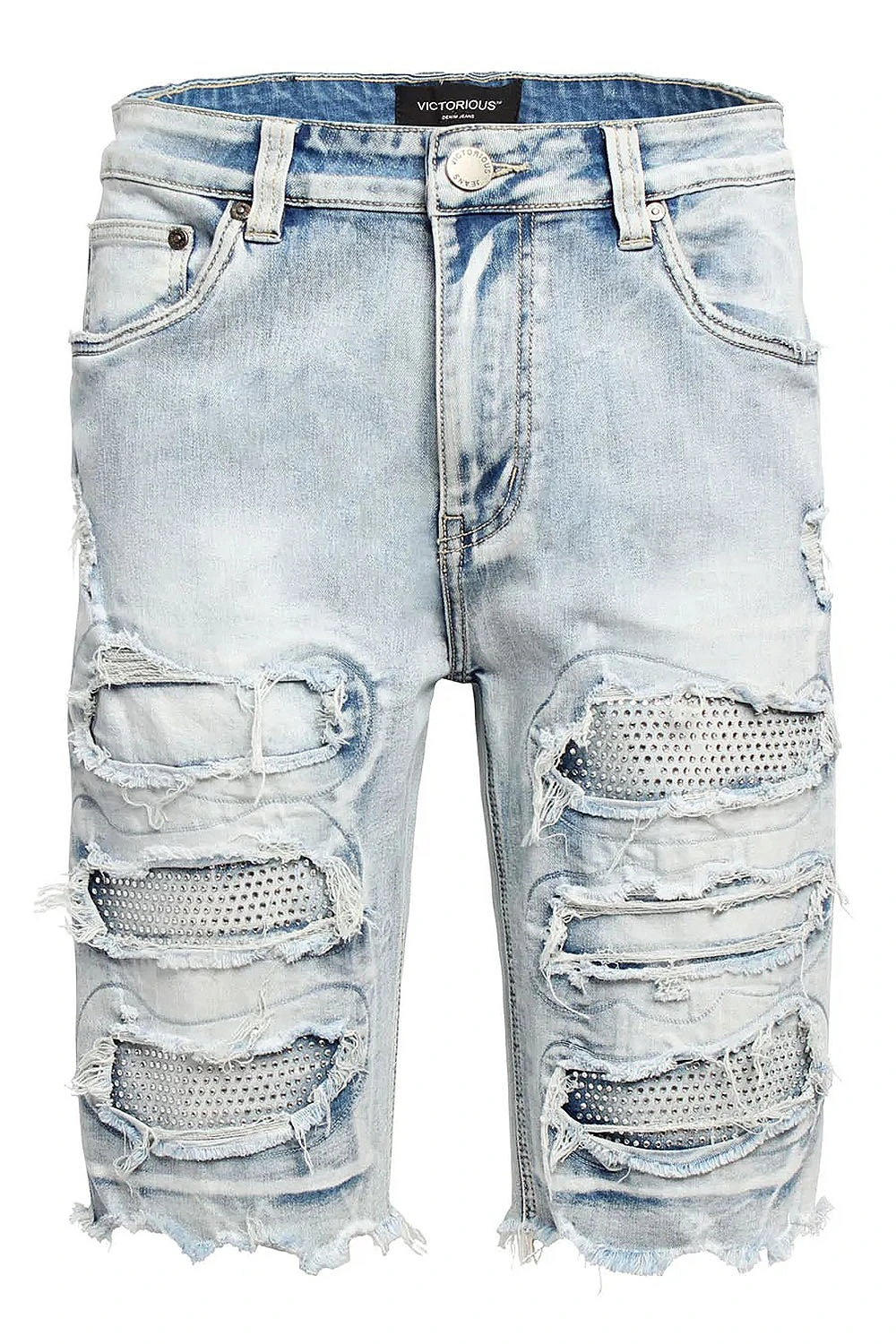 Rhinestones Distressed Denim Shorts