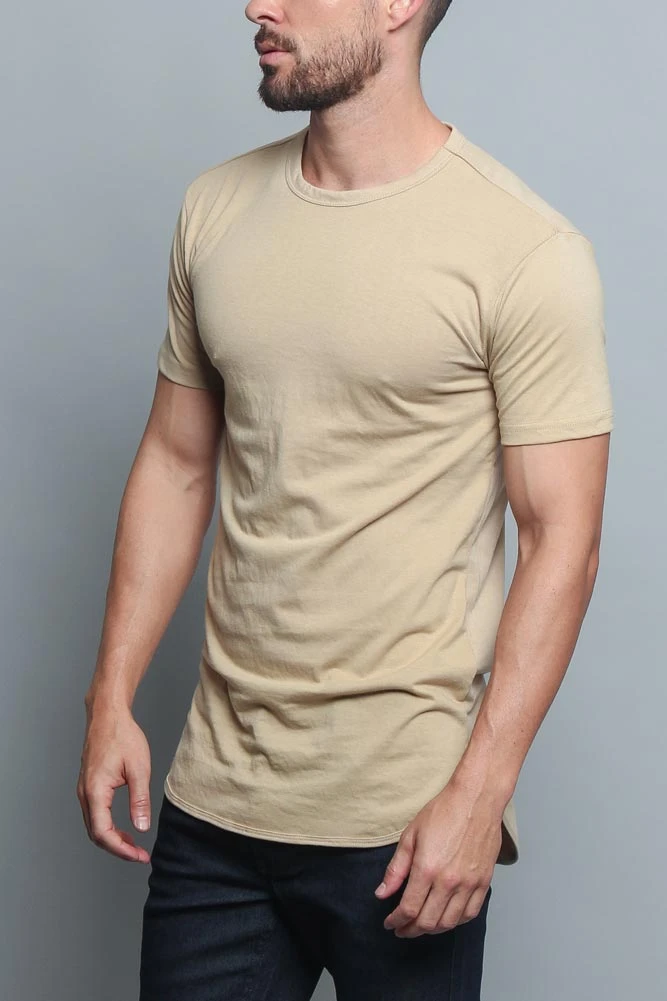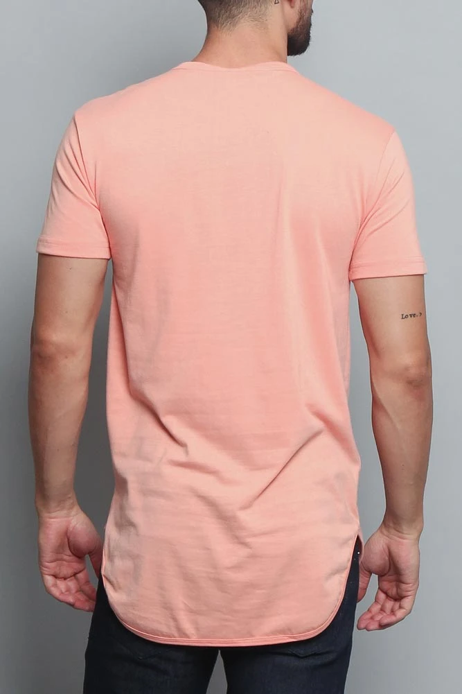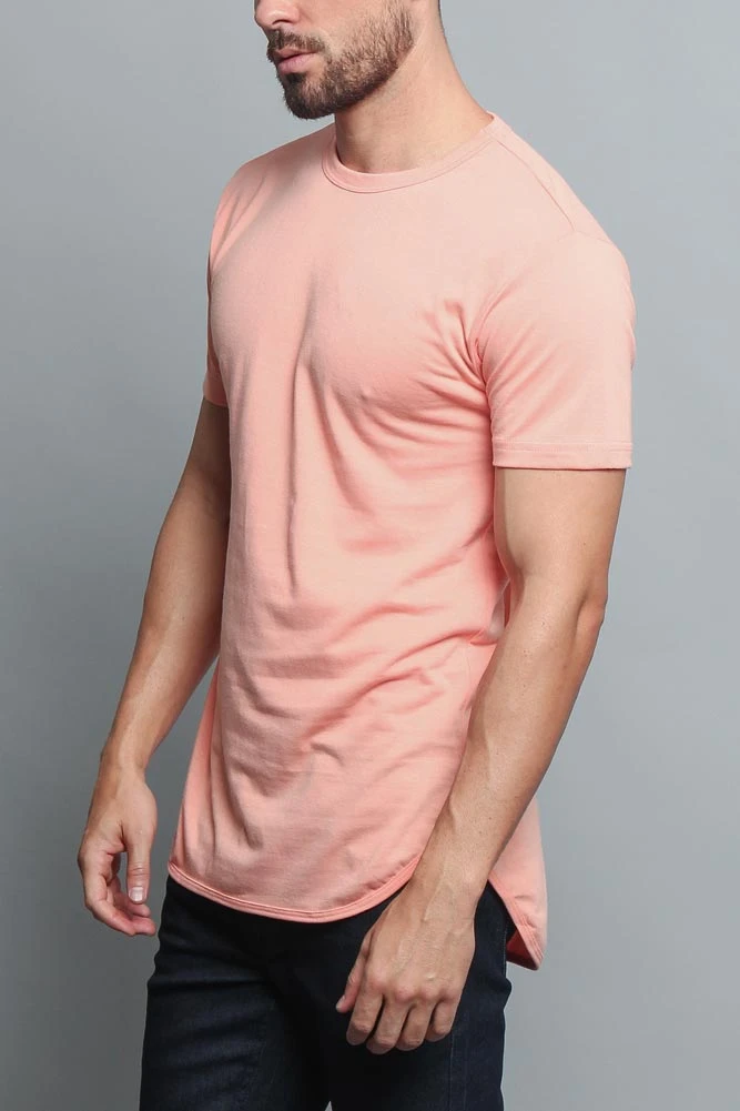 Upgrade your basic tee with this trendy extended length t-shirt with a curved baseball-style hem. Looks great layered under a short jacket!