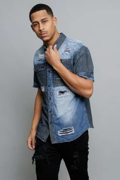 Distressed Denim Button Up Shirt
