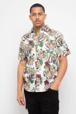Floral Tiger Button Up